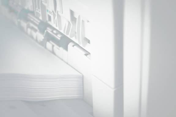 550 Blatt Kapazität, optionale Bannerzufuhr bzw. auch der Druck von Bannerpapier bis zu 1.220mm Länge möglich.