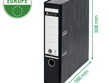 Leitz 180° Qualitäts-Ordner mit patentierter 180°-Präzesionsmechanik öffnen sich 50 % weiter als andere Ordnertypen und lassen Sie Ihre Unterlagen 20 % schneller ablegen. Sie können zwischen 350 und 600 A4-Blätter aufnehmen. Die Serie trägt seit mehr als 25 Jahren das Umweltzeichen Blauer Engel, ist seit 2011 FSC-zertifiziert und bestehen zu 100 % aus recyceltem, hochwertigem Karton, sind klima-kompensiert und zu 100 % recycelbar. Farbe schwarz.