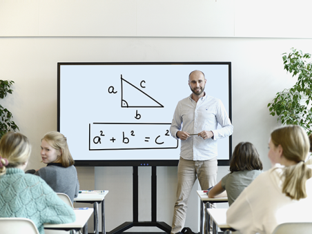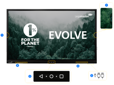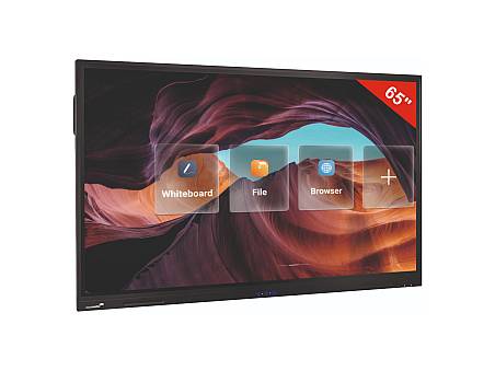 Business-Touch-Display, geätzte Glasoberfläche, dadurch keine Abnutzung, Energiesparmeister, Objekterkennung/Passive Pen, Helligkeit 450 cd/m2, Schwenkarmhalterung.