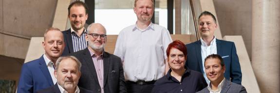 Bannerfoto, v.l.n.r: Damian Bloch, Friedrich I. Resin, Benjamin Zähringer, Martin Gießler, Christoph Uhlen, Katja Köppel, Mike Waldraff und Hannes Schwöppe